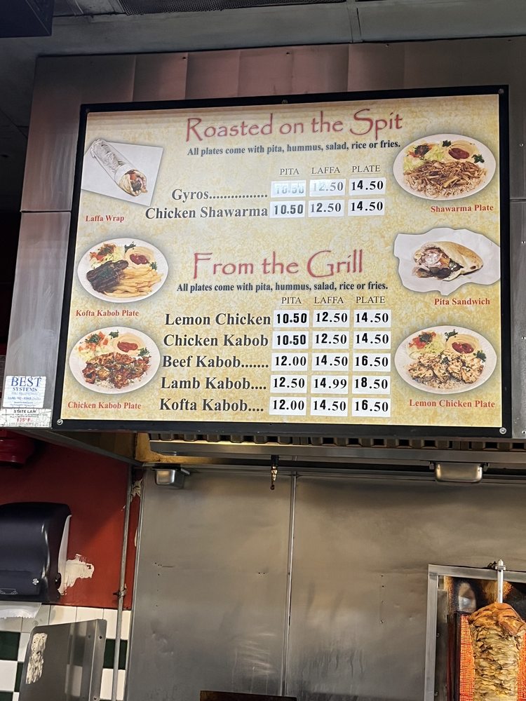 pick shawarma or gyro sk of kofta or chicken kabob or lemon chickenricesaladhummuspitas