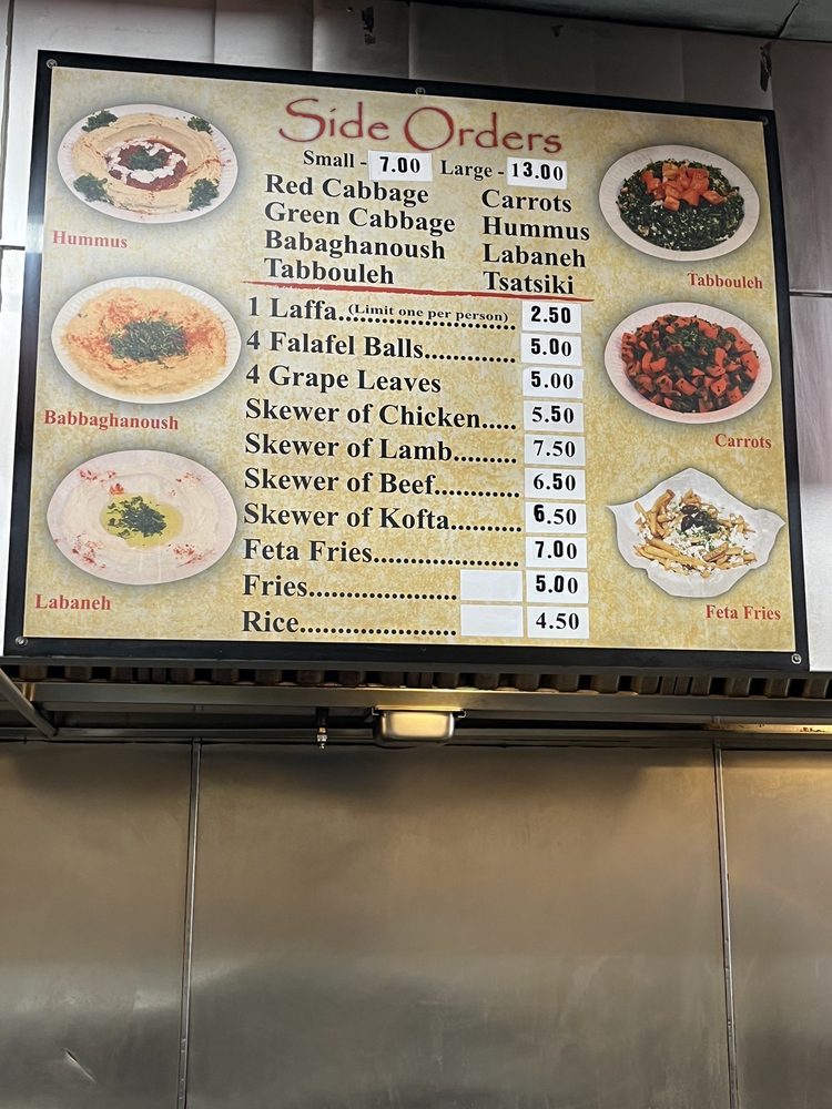 Choose of gyro ,Shawarma or chicken kebab or lemon chickenOr falafelHummus SaladRicePitaTahiniHot sauce